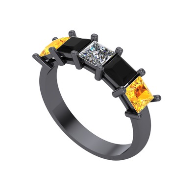 Pırlanta, siyah zirkon ve sitrin 925 ayar siyah rodyum kaplama gümüş yüzük (0.39 karat)
