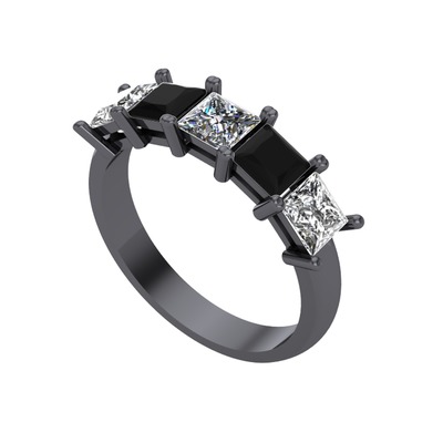 Pırlanta, siyah zirkon ve swarovski 925 ayar siyah rodyum kaplama gümüş yüzük (0.39 karat)