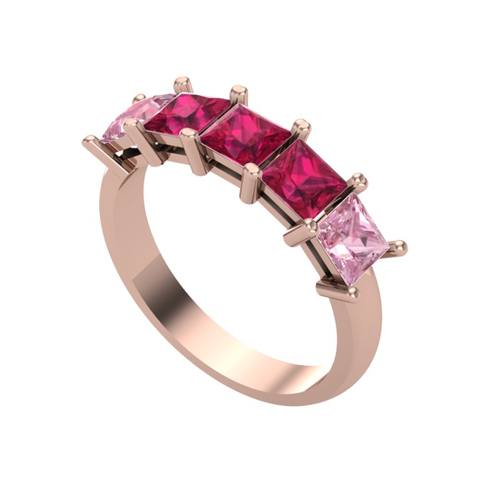 Rodolit garnet ve pembe kuvars 8 ayar rose altın yüzük