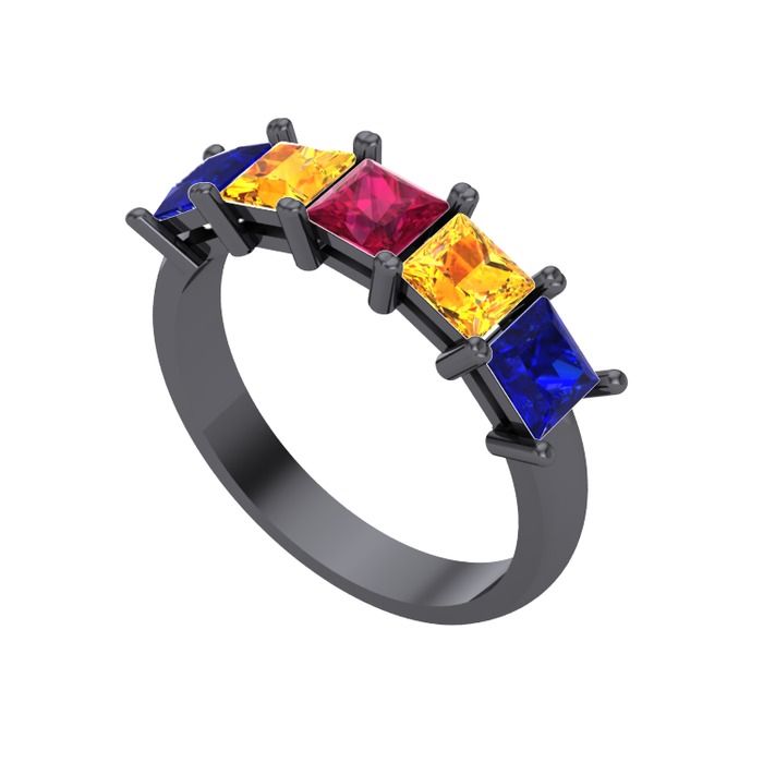 Rodolit garnet, sitrin ve lab safir 925 ayar siyah rodyum kaplama gümüş yüzük