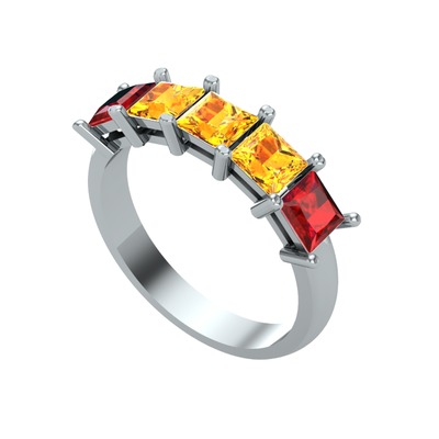 Sitrin ve garnet 8 ayar beyaz altın yüzük
