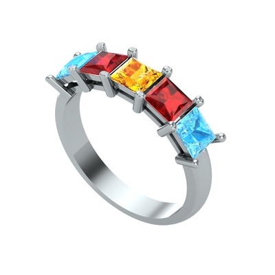 Sitrin, garnet ve akuamarin 18 ayar beyaz altın yüzük