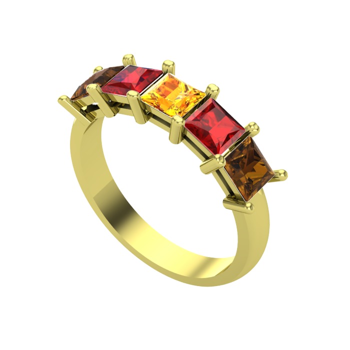 Sitrin, garnet ve dumanlı kuvars 925 ayar altın kaplama gümüş yüzük