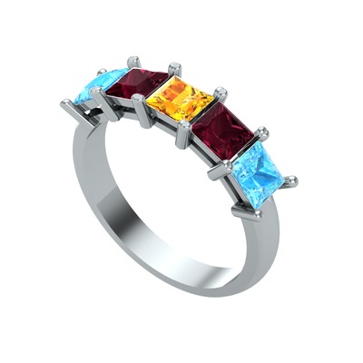 Sitrin, kök yakut ve akuamarin 18 ayar beyaz altın yüzük