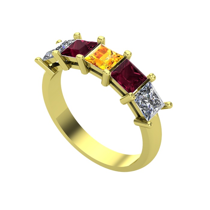 Sitrin, kök yakut ve pırlanta 8 ayar altın yüzük (0.78 karat)