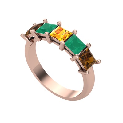 Sitrin, kök zümrüt ve dumanlı kuvars 14 ayar rose altın yüzük