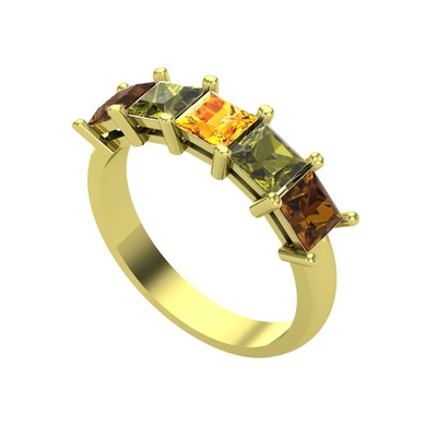 Sitrin, peridot ve dumanlı kuvars 8 ayar altın yüzük