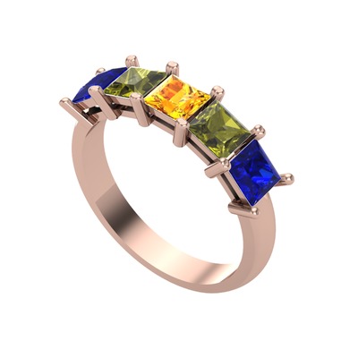 Sitrin, peridot ve lab safir 14 ayar rose altın yüzük