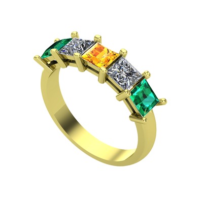 Sitrin, pırlanta ve yeşil kuvars 18 ayar altın yüzük (0.78 karat)