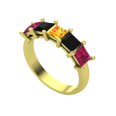 Sitrin, siyah zirkon ve rodolit garnet 925 ayar altın kaplama gümüş yüzük
