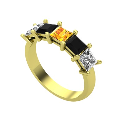 Sitrin, siyah zirkon ve swarovski 18 ayar altın yüzük