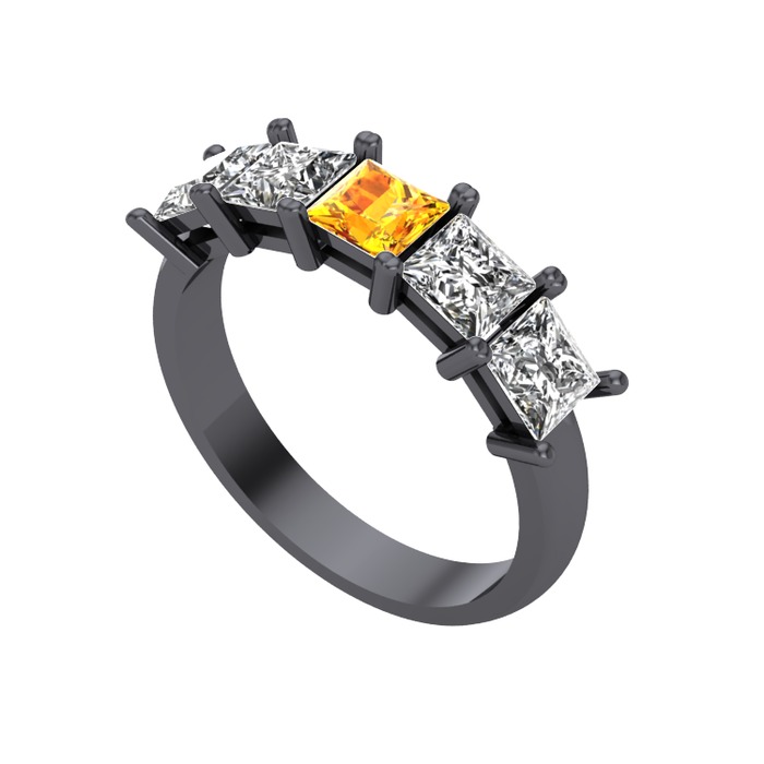 Sitrin, swarovski ve beyaz zirkon 925 ayar siyah rodyum kaplama gümüş yüzük