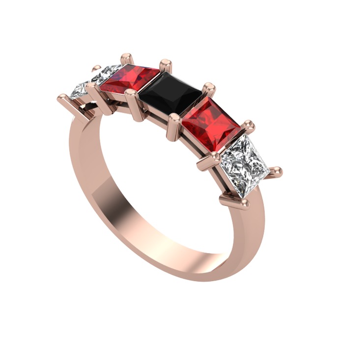 Siyah zirkon, garnet ve beyaz zirkon 925 ayar rose altın kaplama gümüş yüzük
