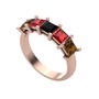 Siyah zirkon, garnet ve dumanlı kuvars 14 ayar rose altın yüzük