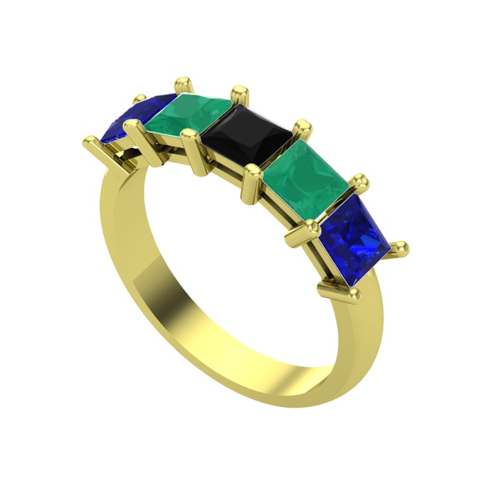 Siyah zirkon, kök zümrüt ve lab safir 925 ayar altın kaplama gümüş yüzük
