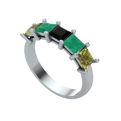 Siyah zirkon, kök zümrüt ve peridot 18 ayar beyaz altın yüzük