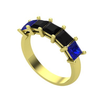 Siyah zirkon ve lab safir 18 ayar altın yüzük