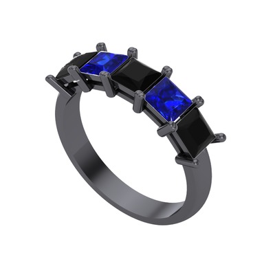 Siyah zirkon ve lab safir 925 ayar siyah rodyum kaplama gümüş yüzük