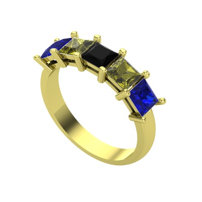 Siyah zirkon, peridot ve lab safir 925 ayar altın kaplama gümüş yüzük
