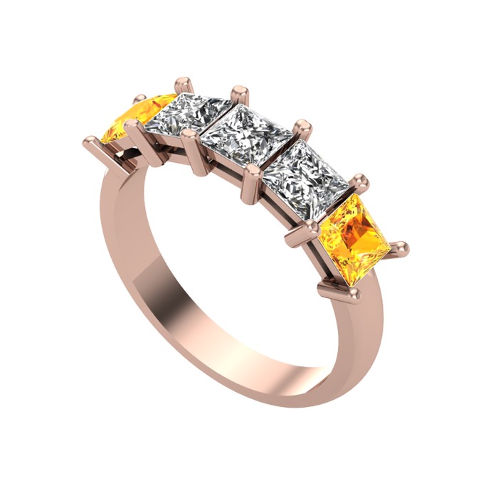 Swarovski, beyaz zirkon ve sitrin 925 ayar rose altın kaplama gümüş yüzük