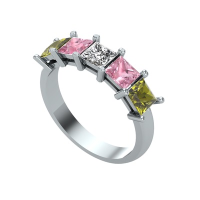 Swarovski, pembe kuvars ve peridot 925 ayar gümüş yüzük