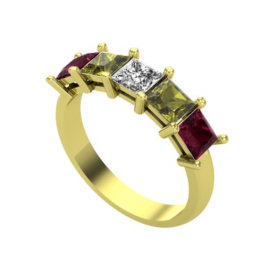 Swarovski, peridot ve kök yakut 18 ayar altın yüzük