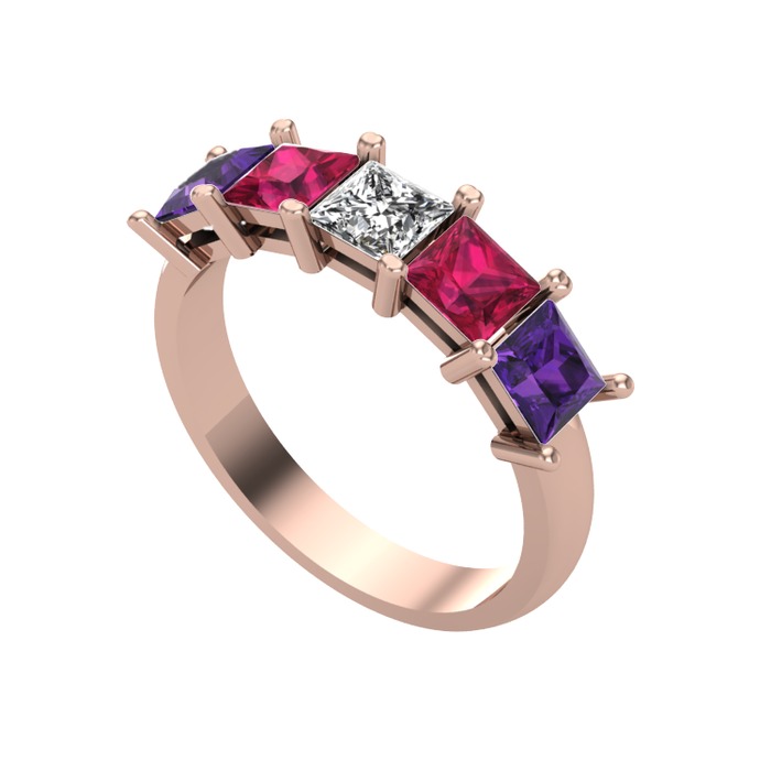 Swarovski, rodolit garnet ve ametist 14 ayar rose altın yüzük