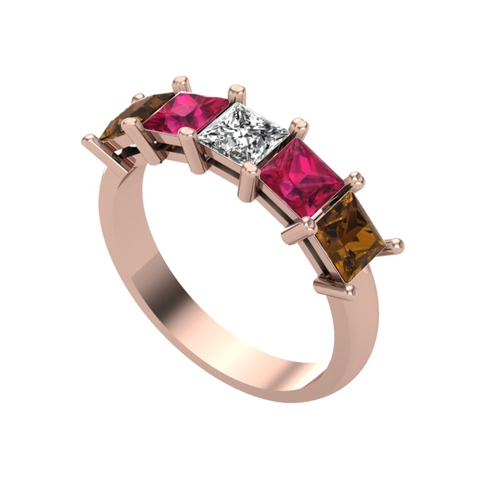 Swarovski, rodolit garnet ve dumanlı kuvars 14 ayar rose altın yüzük