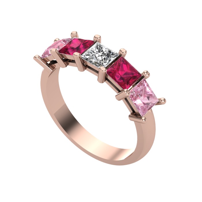 Swarovski, rodolit garnet ve pembe kuvars 8 ayar rose altın yüzük