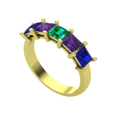 Yeşil kuvars, ametist ve lab safir 18 ayar altın yüzük