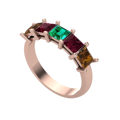 Yeşil kuvars, kök yakut ve dumanlı kuvars 8 ayar rose altın yüzük