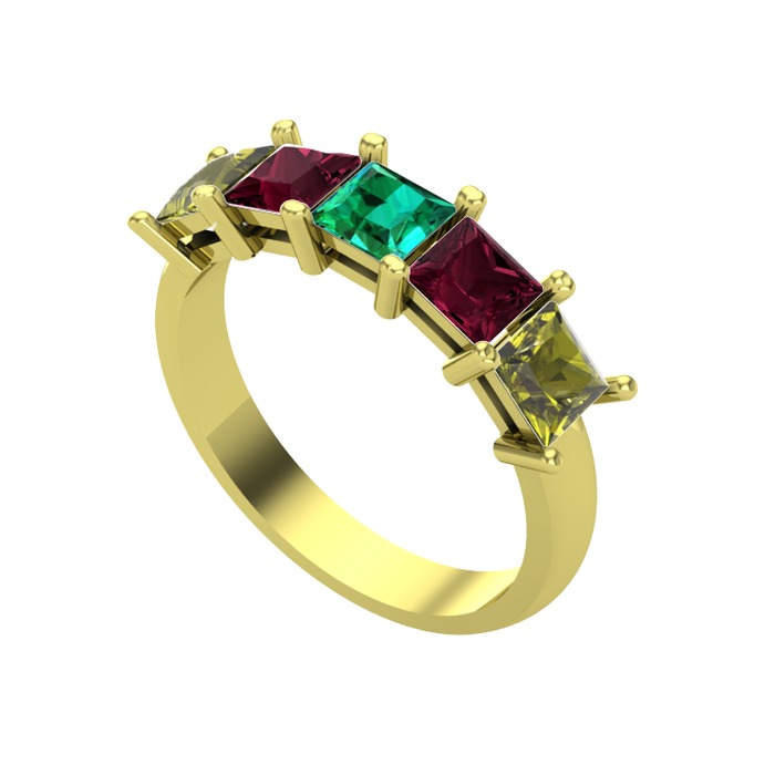 Yeşil kuvars, kök yakut ve peridot 8 ayar altın yüzük