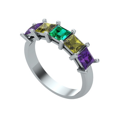 Yeşil kuvars, peridot ve ametist 18 ayar beyaz altın yüzük