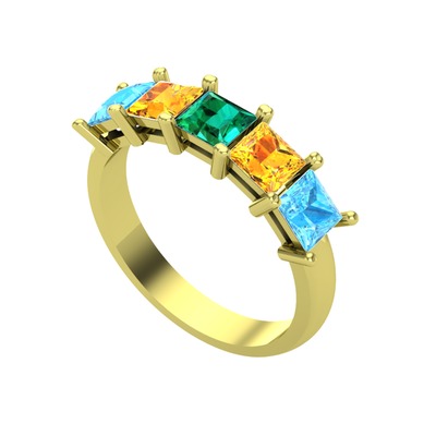 Yeşil kuvars, sitrin ve akuamarin 18 ayar altın yüzük