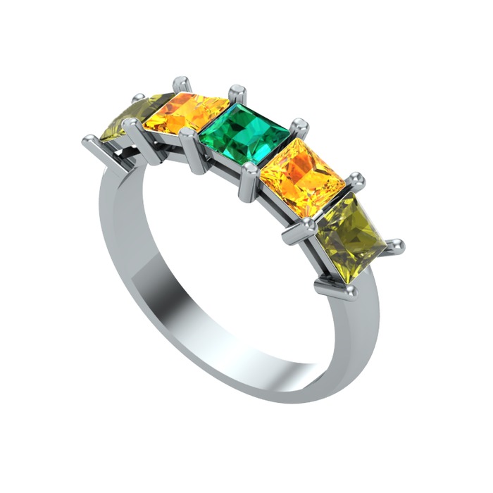 Yeşil kuvars, sitrin ve peridot 925 ayar gümüş yüzük