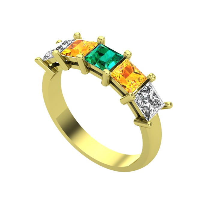 Yeşil kuvars, sitrin ve swarovski 18 ayar altın yüzük