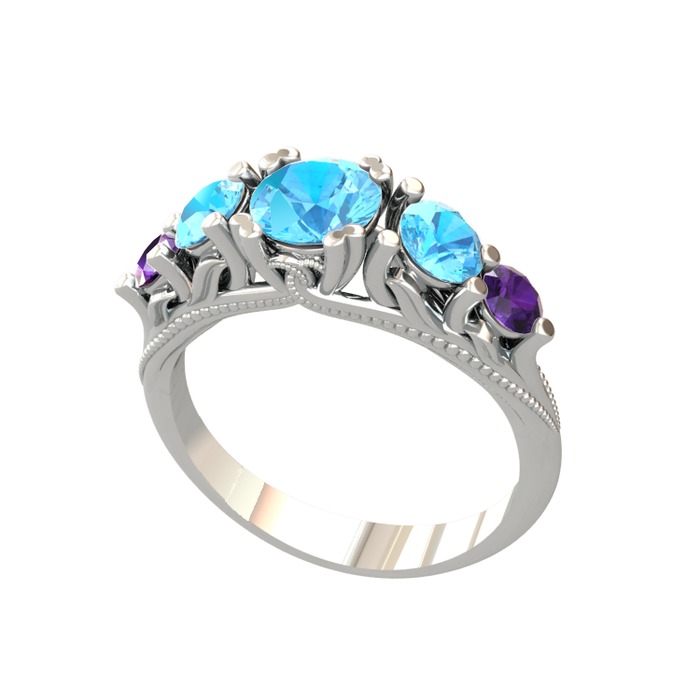 Akuamarin ve ametist 8 ayar beyaz altın yüzük