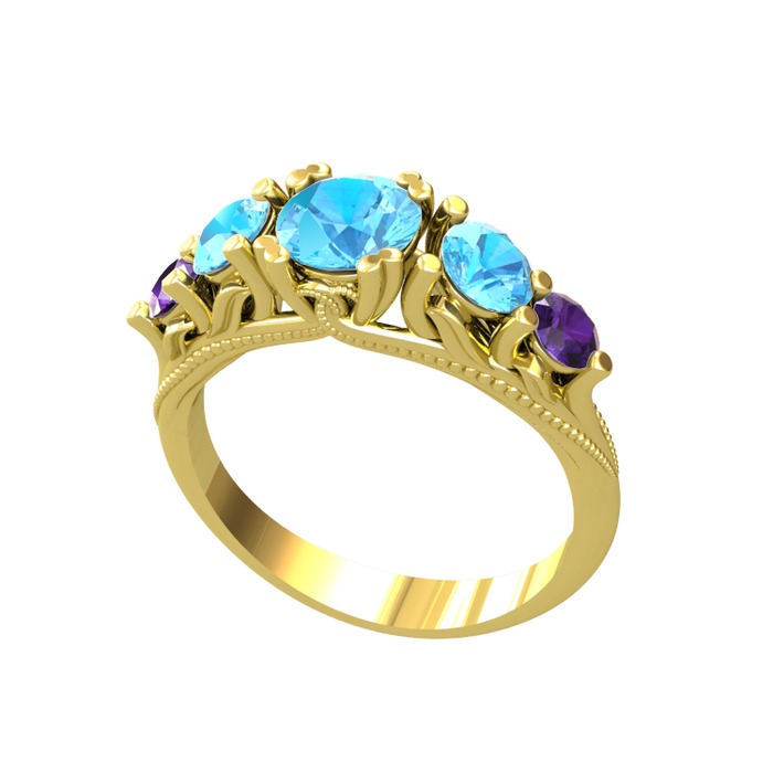 Akuamarin ve ametist 925 ayar altın kaplama gümüş yüzük
