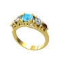 Akuamarin, beyaz zirkon ve dumanlı kuvars 8 ayar altın yüzük