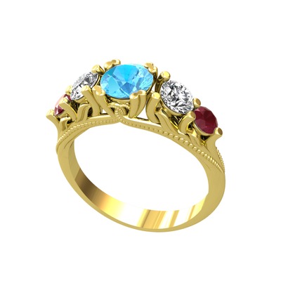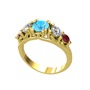 Akuamarin, beyaz zirkon ve kök yakut 925 ayar altın kaplama gümüş yüzük