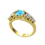 Akuamarin, beyaz zirkon ve swarovski 925 ayar altın kaplama gümüş yüzük