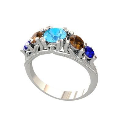 Akuamarin, dumanlı kuvars ve lab safir 18 ayar beyaz altın yüzük