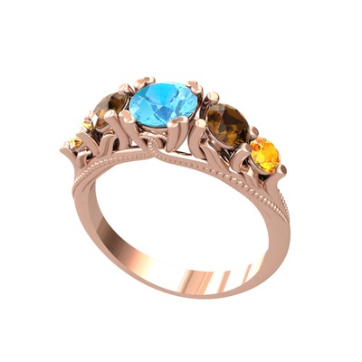 Akuamarin, dumanlı kuvars ve sitrin 8 ayar rose altın yüzük