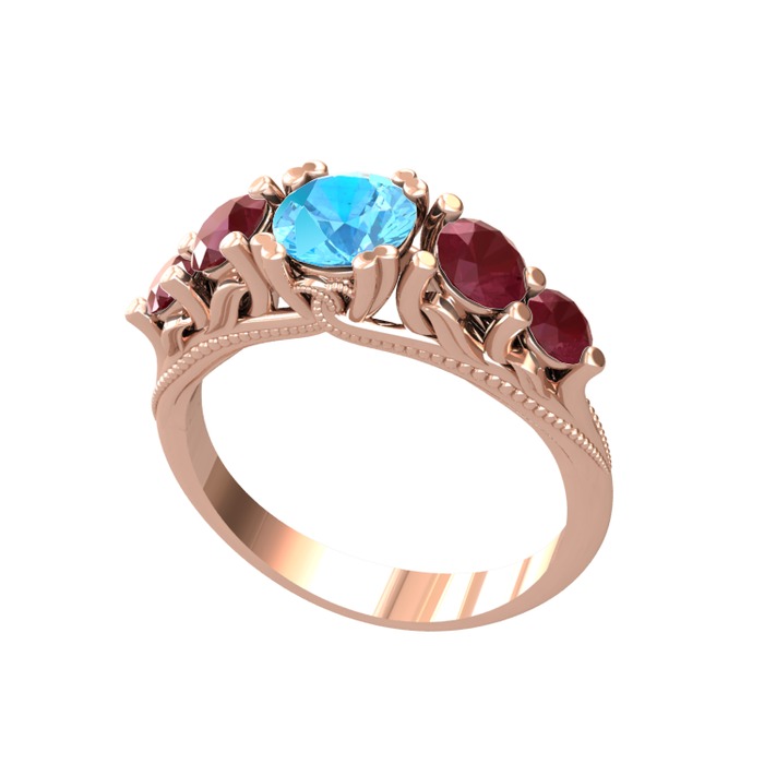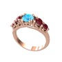 Akuamarin ve kök yakut 925 ayar rose altın kaplama gümüş yüzük