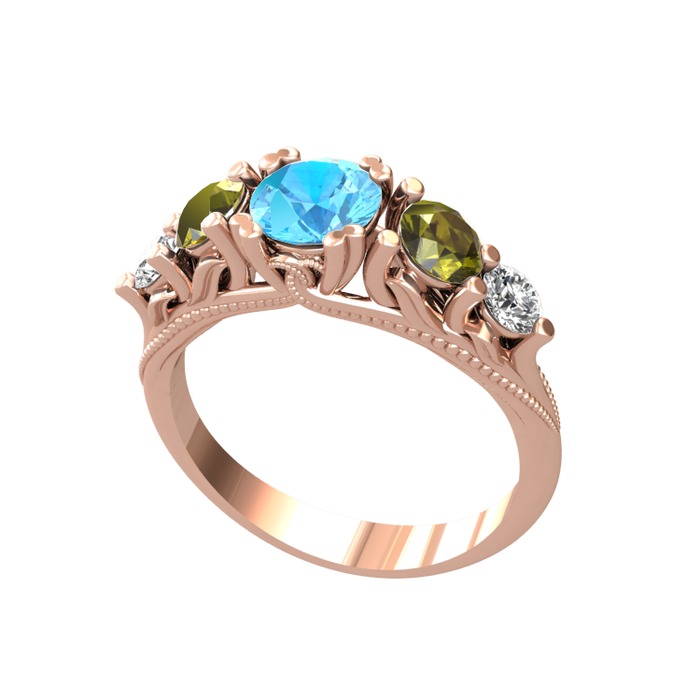 Akuamarin, peridot ve pırlanta 18 ayar rose altın yüzük (0.36 karat)