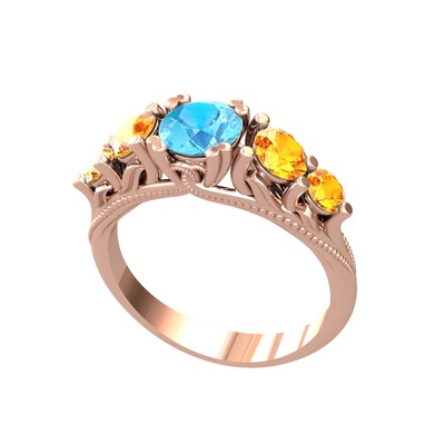 Akuamarin ve sitrin 8 ayar rose altın yüzük