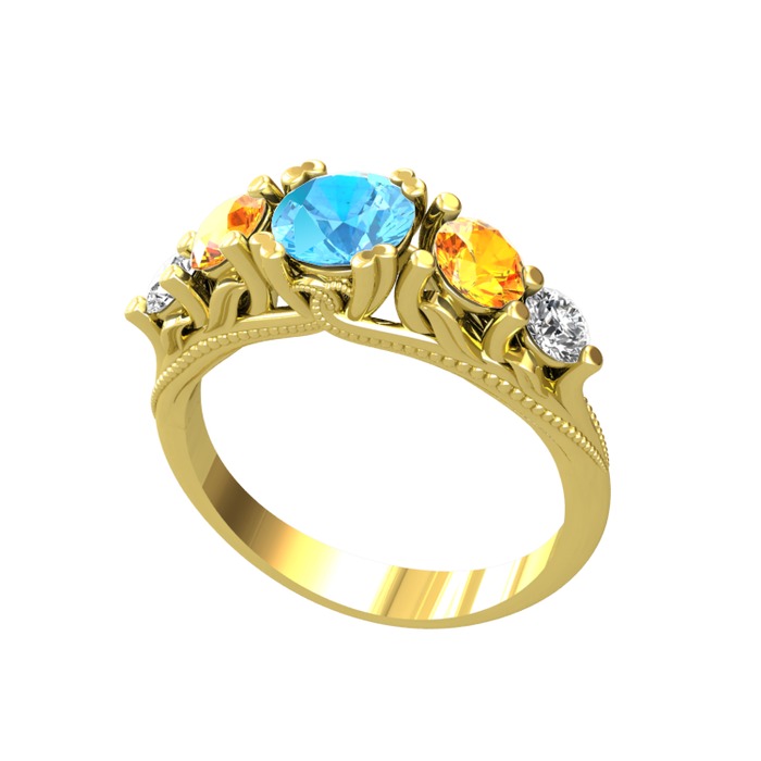 Akuamarin, sitrin ve swarovski 925 ayar altın kaplama gümüş yüzük
