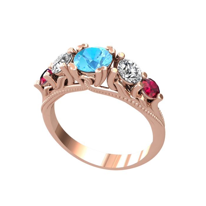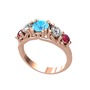 Akuamarin, swarovski ve rodolit garnet 925 ayar rose altın kaplama gümüş yüzük