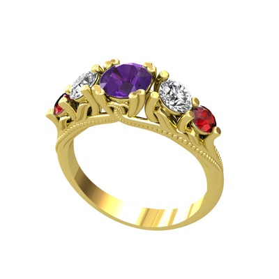 Ametist, beyaz zirkon ve garnet 14 ayar altın yüzük
