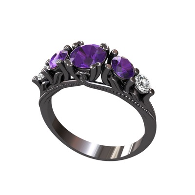 Ametist ve beyaz zirkon 925 ayar siyah rodyum kaplama gümüş yüzük